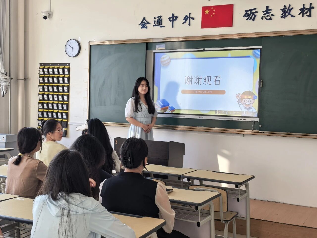 主持人开场明确活动主题与目的后,结合校园生活场景,引出考前焦虑的定义及其六大典型症状,不少同学产生情感共鸣,露出 "这不就是我吗" 的会心表情。在认知调整环节,针对“考试失败即能力不足”的认知误区,主持人引导学生建立“考试是检验而非否定”的理性应考思维。而在方法分享阶段,详细介绍了积极自我暗示、兴趣转移策略等压力调节方法,并现场示范深呼吸放松、肌肉渐进式放松等实操技巧。活动尾声以“保持良好的考试心态”为核心进行总结,鼓励学生将所学方法用于应考实践中,实现从认知到行动的转化。