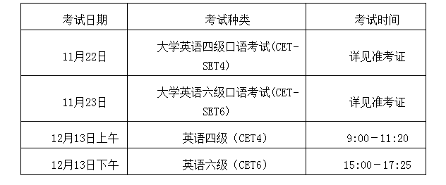 报名成功的考生笔试于2025年12月5日9时,口试于2025年11月18日9时起登录全国大学英语四、六级考试报名网站(http://cet-bm.neea.edu.cn/)进入“个人中心”,下载并打印准考证。