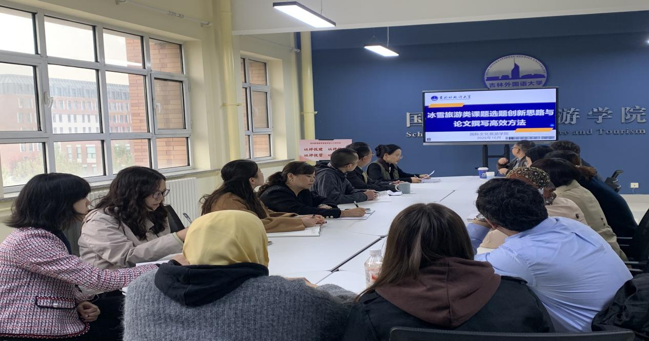 10月15日,为精准赋能教师科研课题申报方向把控与研究生学术论文撰写能力提升,我院特别邀请北京第二外国语学院唐承财教授,开展以“冰雪旅游类课题选题创新思路与论文撰写高效方法”为主题的专题讲座。学院全体教师及2025级研究生全程参与,共同聚焦冰雪旅游领域学术研究核心要点。